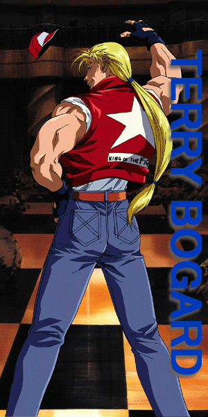 ![]() | BIO:Known as the Lone Wolf, Terry is one of SNK's most prized characters. He's the main character in Fatal Fury and leader of the Garou whatever team. >.< His father was killed by Geese Howard right before his eyes yet he brought up Geese's son, Rock. Terry's former girlfriends Lily and Sulia were also killed and now he has a follower named Mary. O.O MARITAL STATUS: Well he was with Lily. Killed by Geese. Then Sulia. She killed herself. -_- Now is he with Mary? Thats kind of an iffy situation we got here. STYLE:What does he always wear? That red vest, hat and blue jeans. But he sure looks good in it! Later on, he does cut that long hair and gets a new style which makes him look alot like a trucker. FIGHTING SKILLS:A website said he trained under a technique called Kenka Sappou, meaning Deadly Brawling. He's very speedy yet very strong at the same time making him a very annoying opponent to face. (Believe me! O.O) SEX:Very pleasant and very smooth. Terry is a perfect ladies man and seems great in places such as the bedroom. ^_~ COMPETITION:Mary!!! That woman is evil. Evil I tell ya! You even touch "her Terry" she'll get ya! You've been warned... OVERALL:Terry maybe a little stubborn at first but he is a true gentlemen. And if you've won his heart, theres no one to worry about that will stop you. |